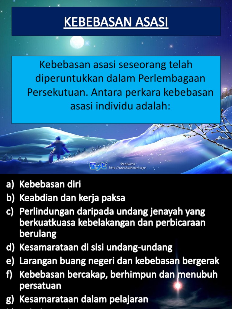 Kebebasan Asasi CIKGU SSARA STAR TUTOR ONLINE TUITION 푾풆 풂풓풆 풕풉풆 풃풆풔풕 풐풏풍풊풏풆 풕풆풂풄풉풊풏품 풑풍풂풕풇풐풓풎 풊풏. Kebebasan Asasi Kebebasan asasi seseorang individu telah diperuntukkan dalam bahagian-bahagian Perlembagaan Persekutuan. Perkara-perkara kebebasan asasi adalah seperti berikut.